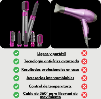 Pasar de un cabello desordenado a un peinado de revista nunca fue tan fácil. Sécalo, rízalo o alísalo en minutos y disfruta de un resultado profesional que hará que todos noten el cambio.